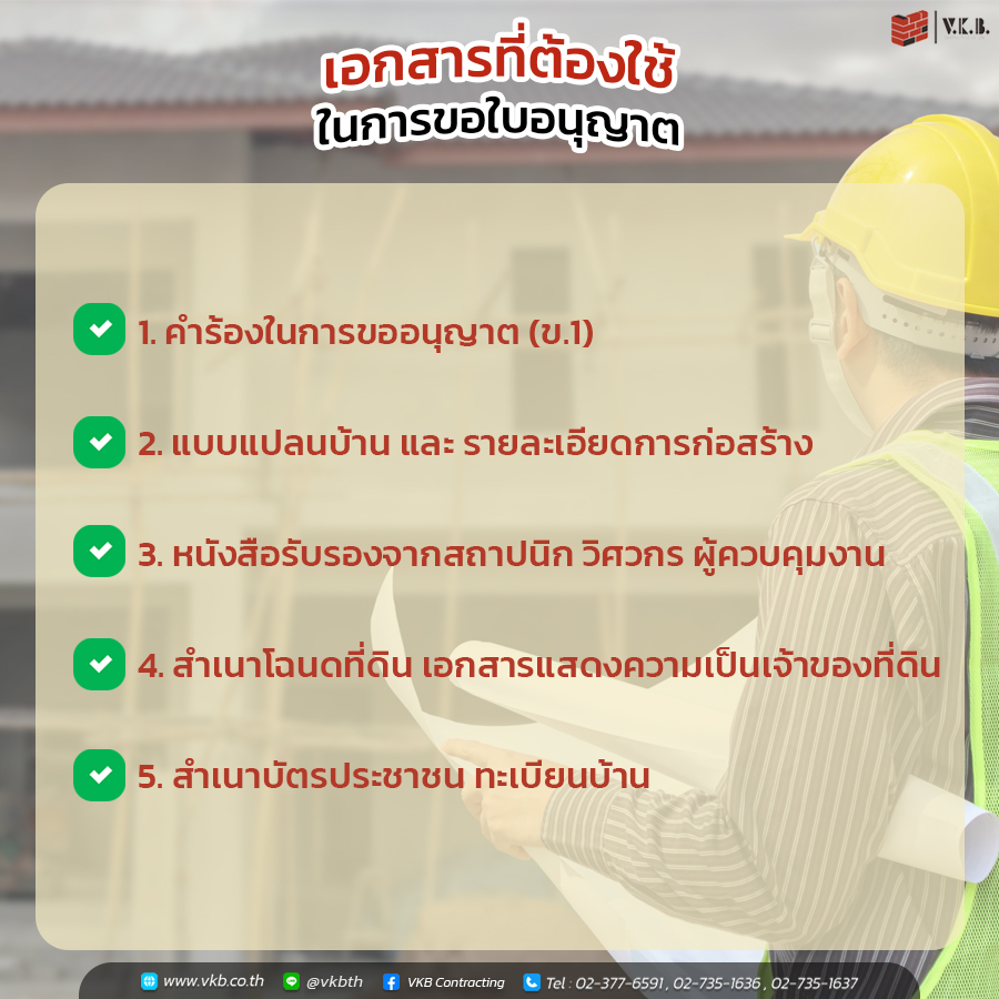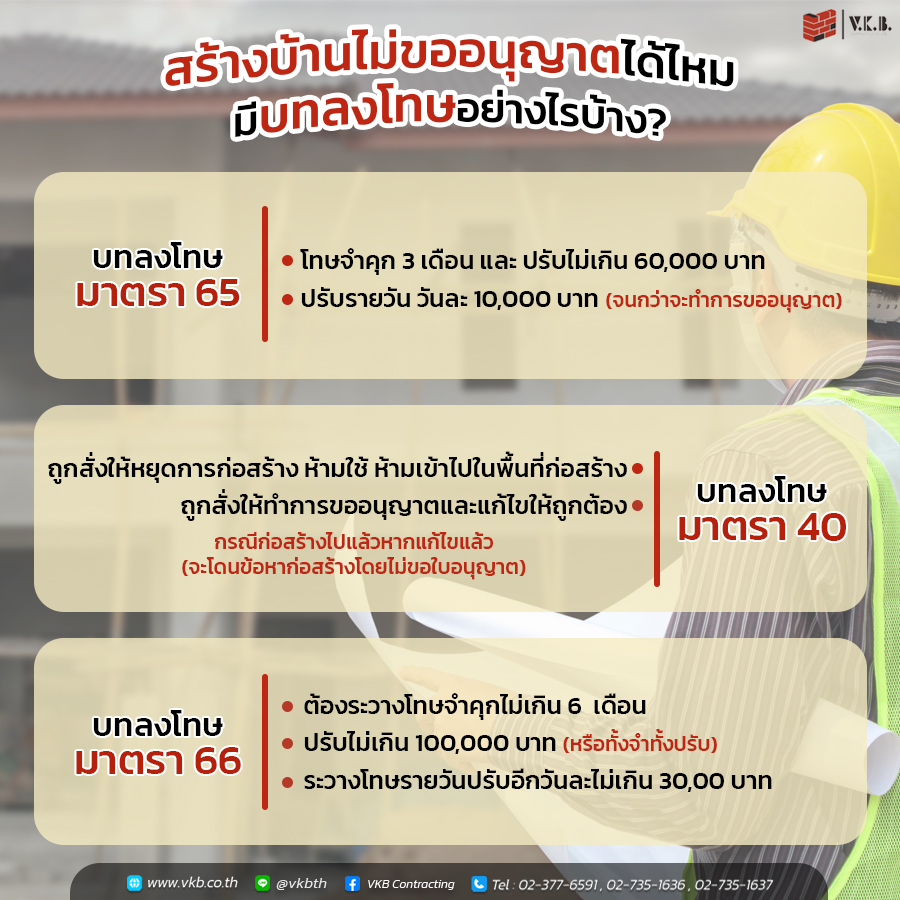 “อยากมีบ้าน” หนึ่งในความฝันของใครหลายคน รู้หรือไม่ว่าการที่จะสร้างบ้านไม่ใช่จู่ๆ อยากสร้างก็สร้างได้เลย แต่การสร้างบ้านมีกฎระเบียบข้อบังคับด้วยเช่นกัน สร้างบ้าน ไม่ขออนุญาตได้ไหม ??? หนึ่งในคำถามที่หลายคนสงสัย สำหรับใครที่มีแพลนจะสร้างบ้านควรรู้ไม่เช่นนั้นอาจจะโดน…!!! วันนี้ทาง V.K.B เลยจะมาไขข้อสงสัยเรื่องเกี่ยวกับบ้านที่จะทำให้คุณกระจ่างขึ้น อย่ารอให้มันสายไปมารู้ทันเรื่องบ้าน เรื่องการก่อสร้างไปด้วยกัน ไปหาคำตอบในบทความเลย Let’s Go!!!